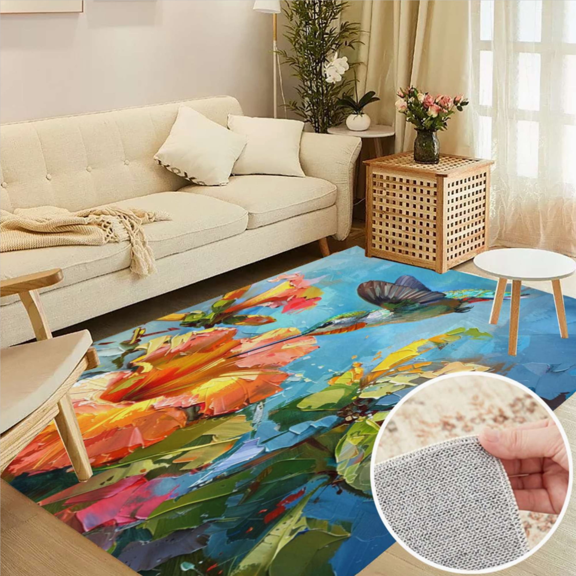 Colorful Hummingbird And Flowers Soft Large Area Rugs Washable Rug With