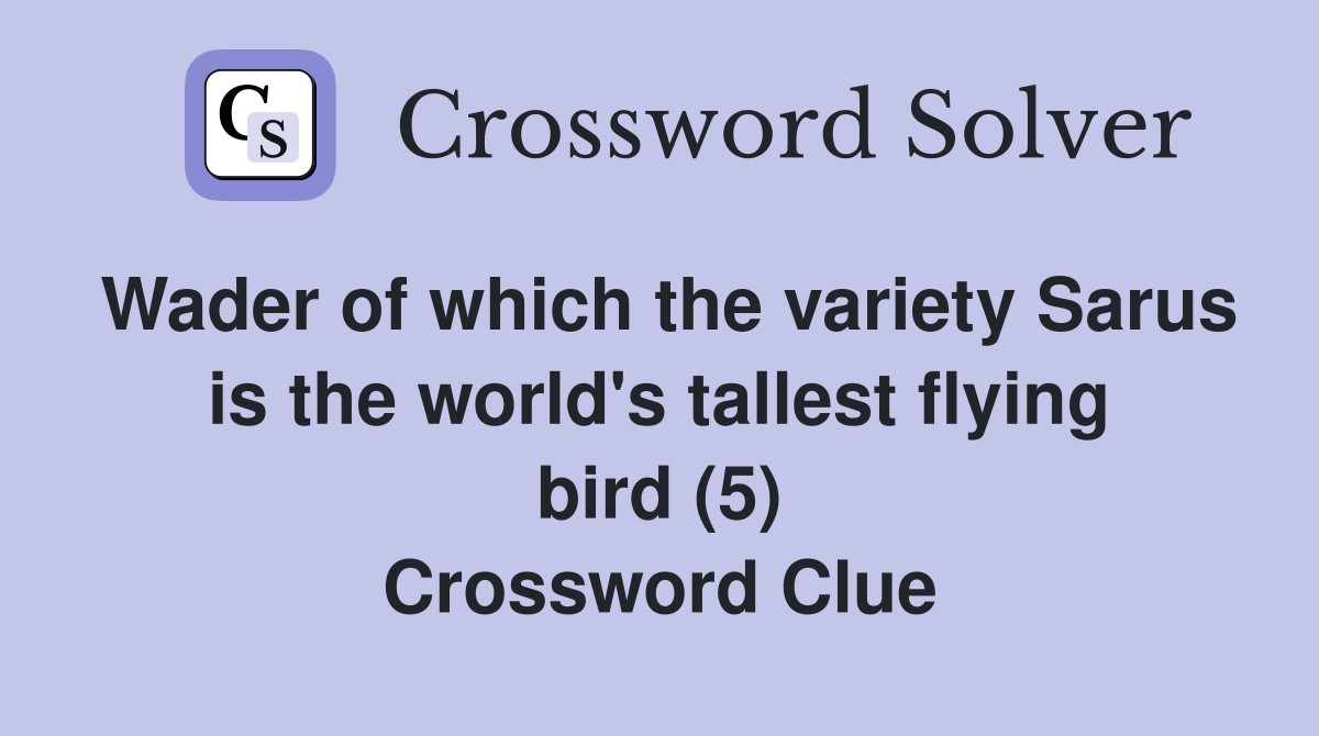 World #39 s tallest flying bird Crossword Clue Answers Crossword Solver