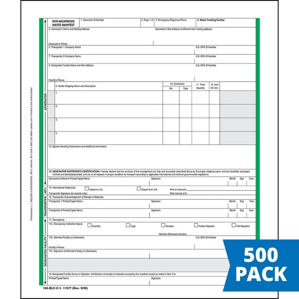 Jj Keller 10498 $356 95 Non Hazardous Waste Manifest PK500 Zoro com