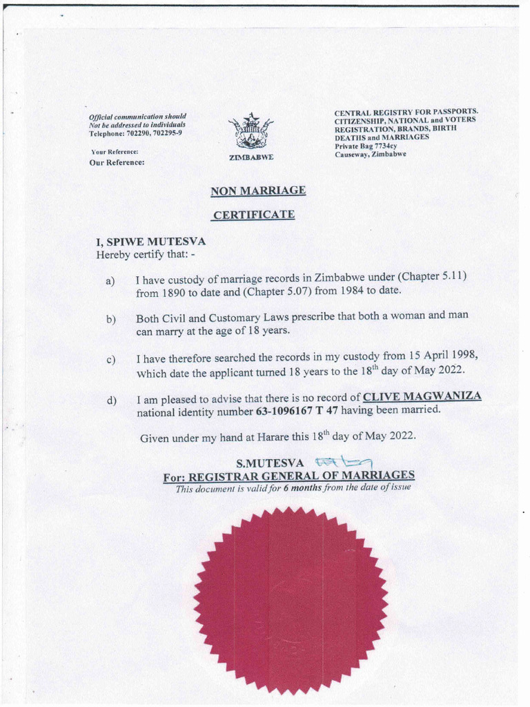 How to apply for a Zimbabwean non marriage certificate Tanaka Life