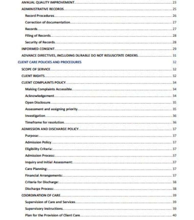 Policy and Procedure Template for Homecare Etsy