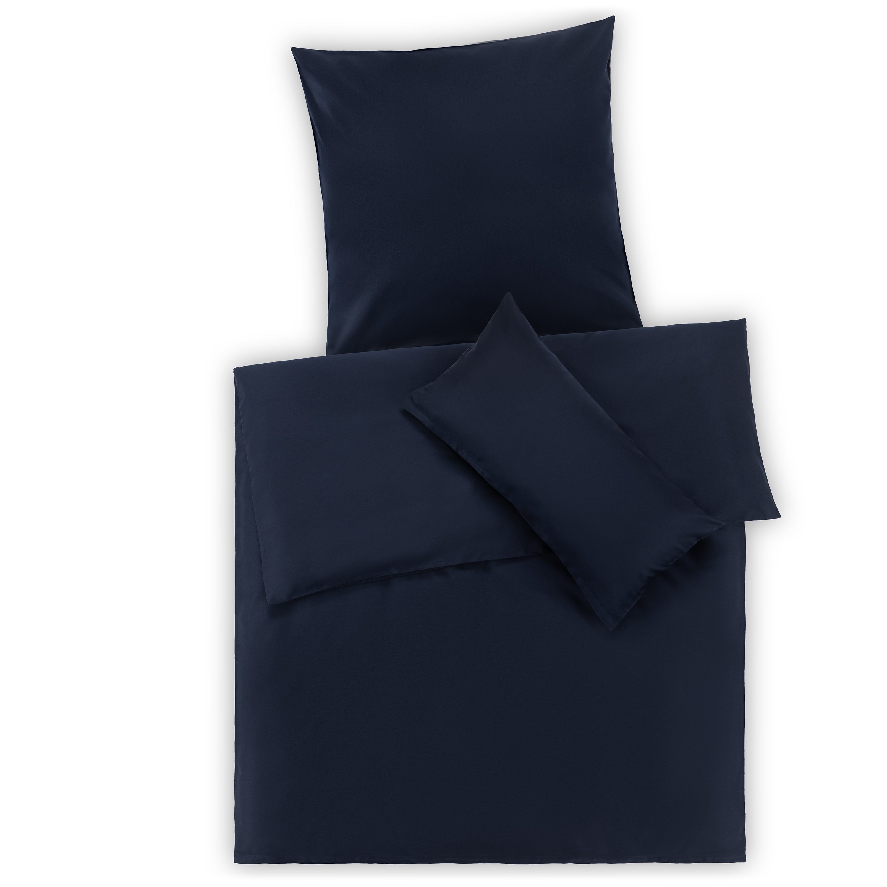 Lorena Mako Satin Bettwäsche uni einfarbig dunkelblau marine Fb 18