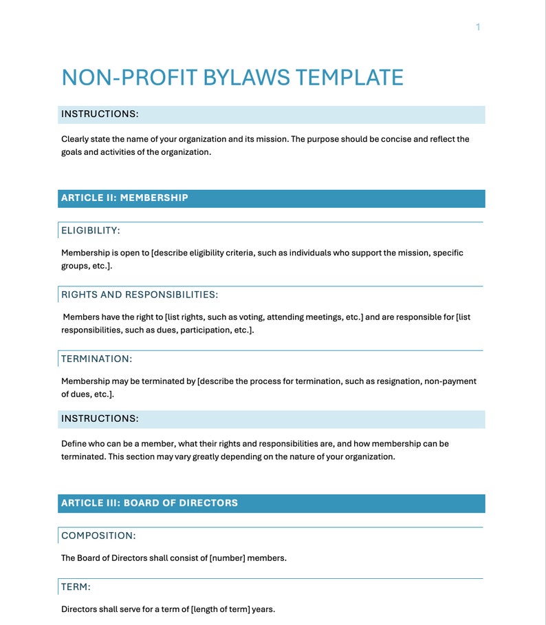 Nonprofit Organization Bylaws Template in Word PDF Google Docs