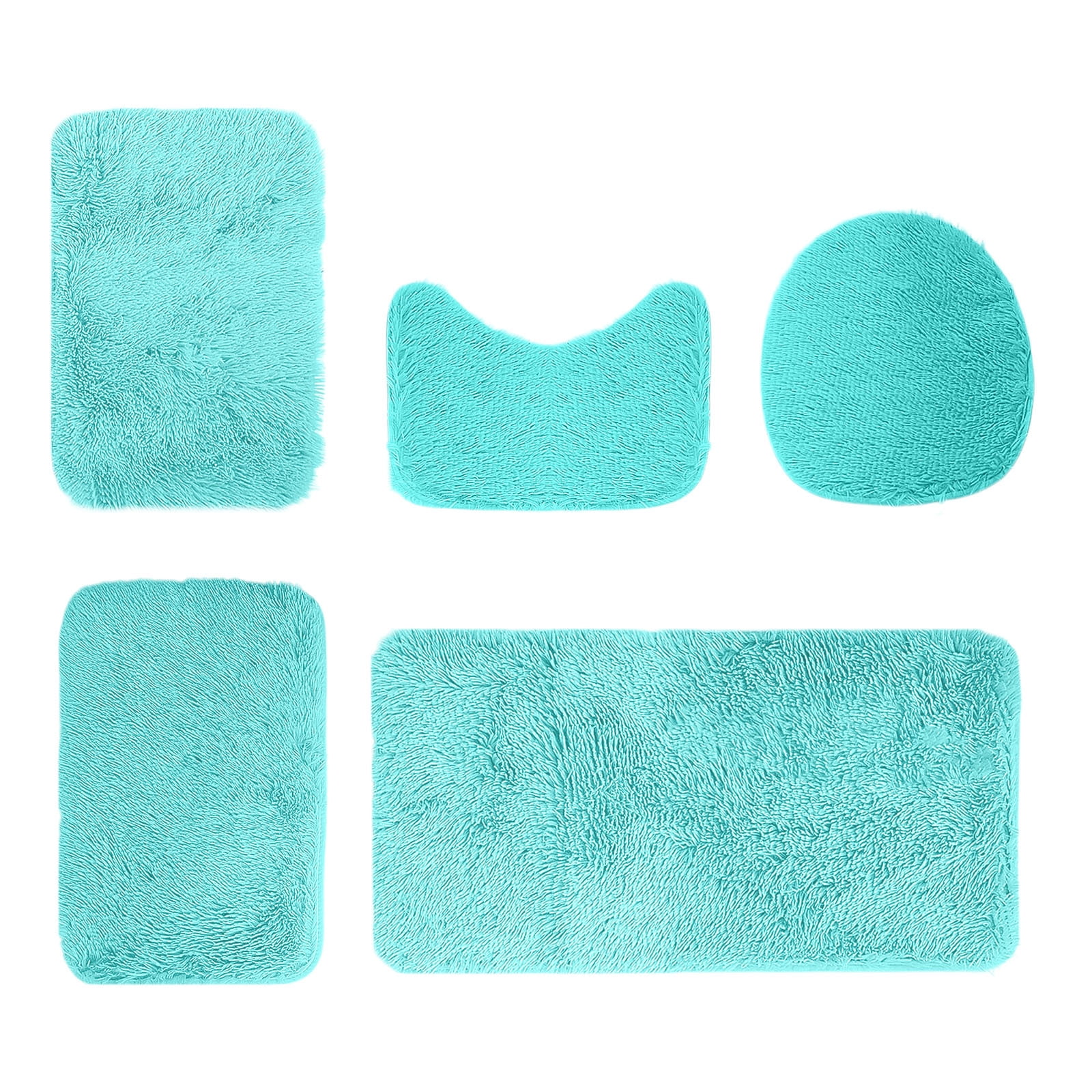 5 Pcs Bath Rugs Set Washable Super Soft Microfiber Water Absorbent and