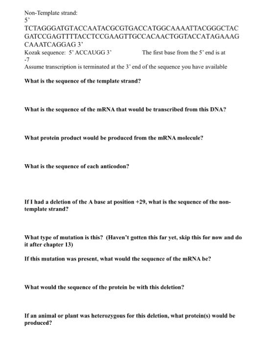 Solved If a DNA non template strand has a sequence of 3 #39 Chegg com