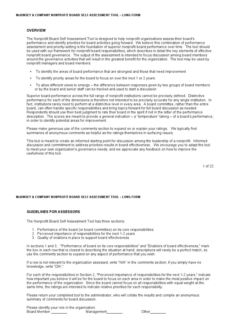 McKinsey Co Nonprofit Board Self Assessment Tool Long Form PDF