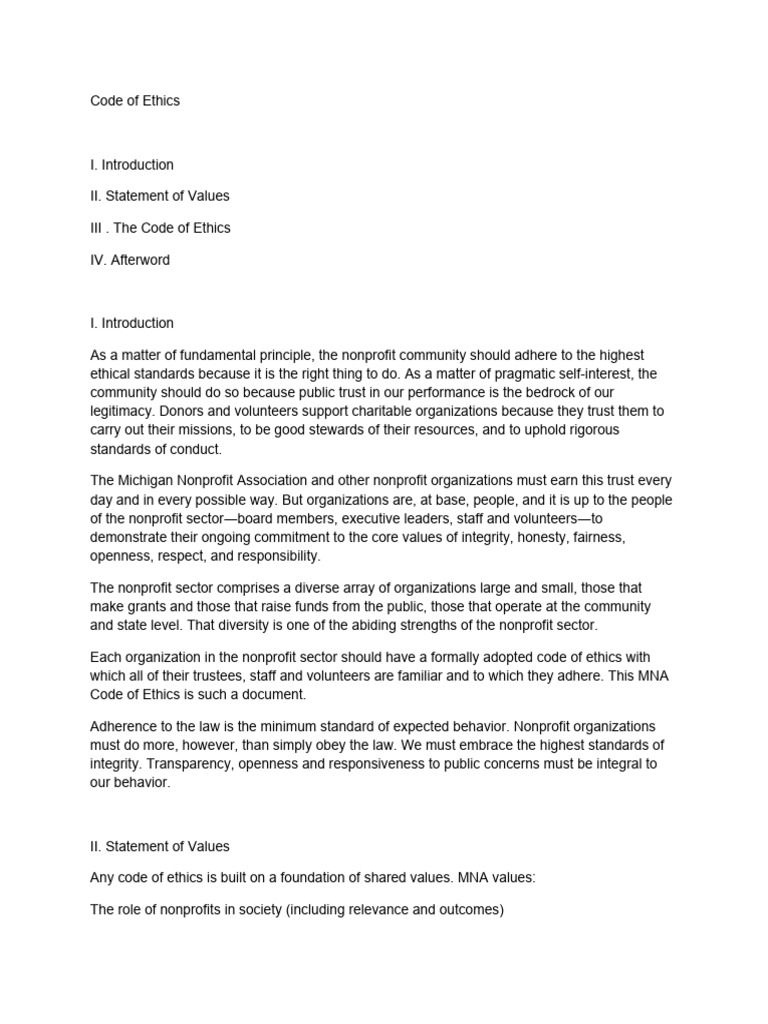 Nonprofit Code Of Ethics Template