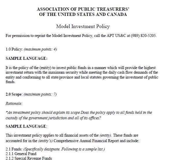 Non Profit Investment Policy Template