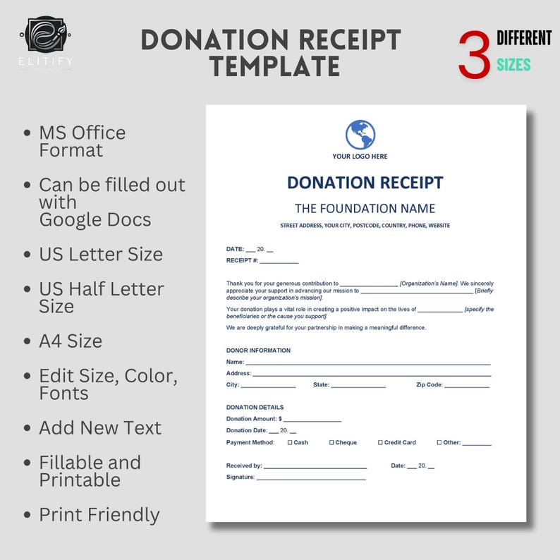 DONATION RECEIPT TEMPLATE / A4 Letter Size Half Letter Size Receipt