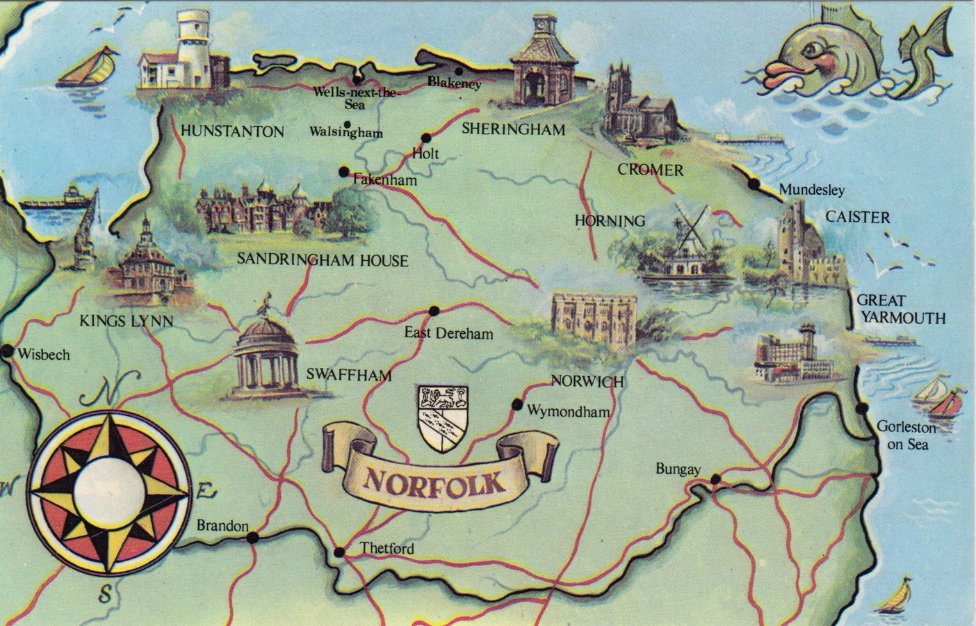 Postcard map of North Norfolk Drawn by M F Peck J Salmon Flickr