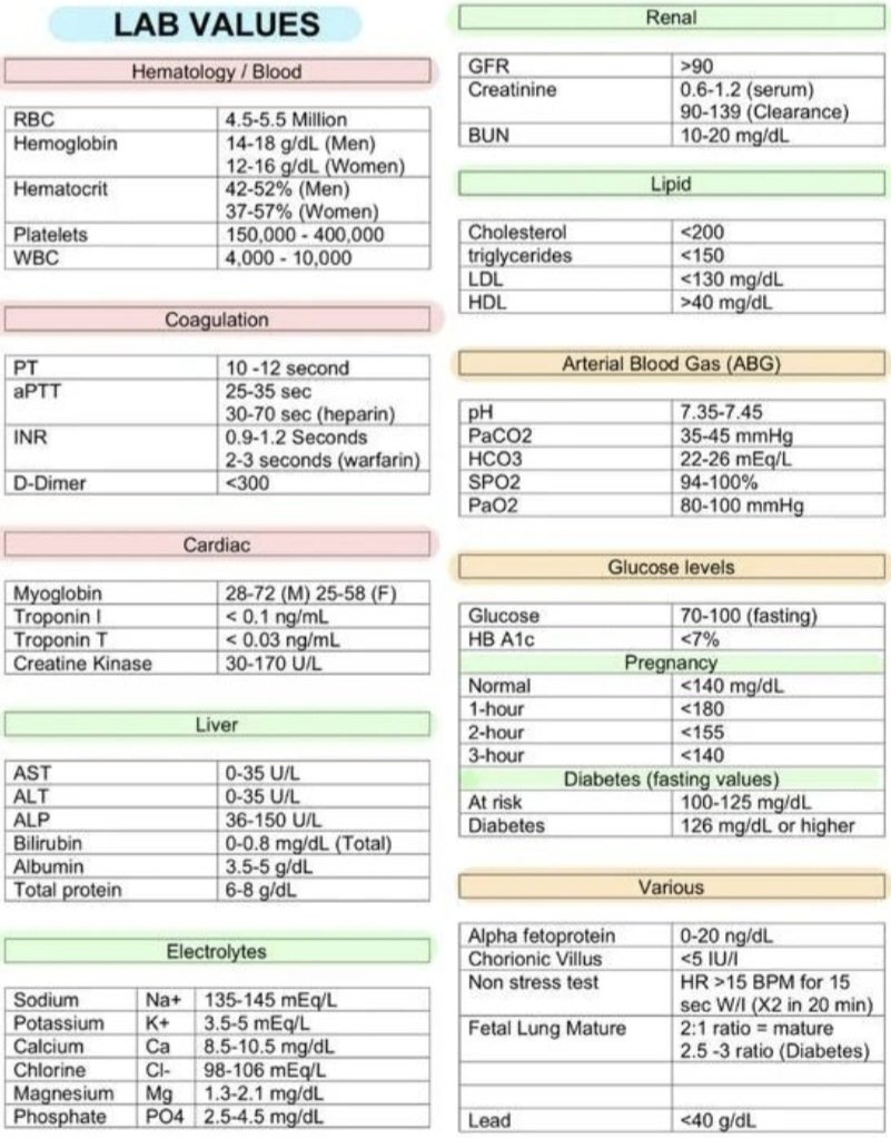 Normal Lab Values Chart Printable Calendar Productivity Hacks