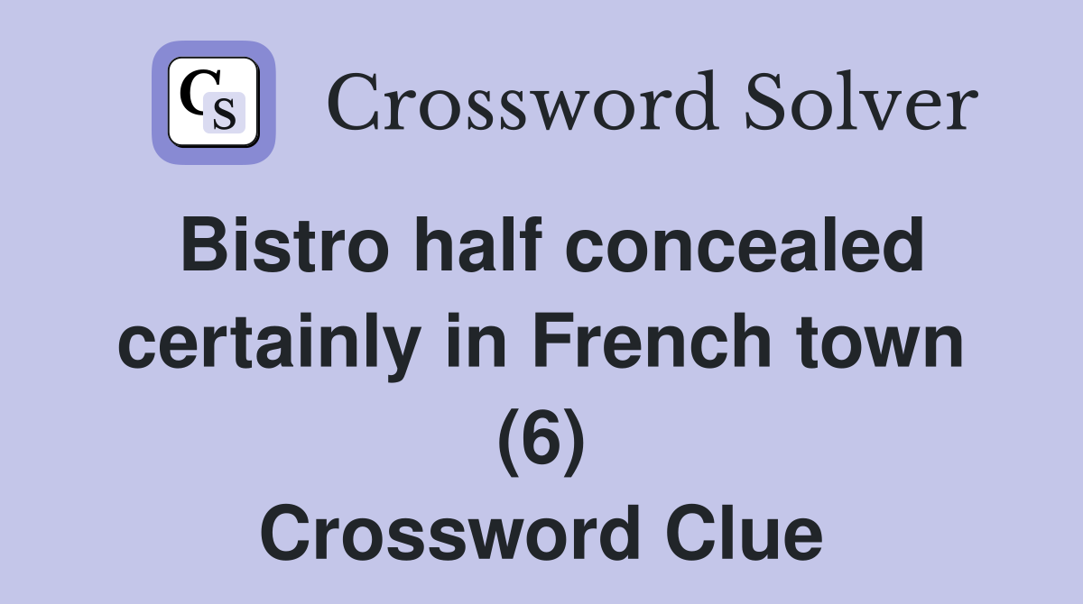 Bistro half concealed certainly in French town (6) Crossword Clue