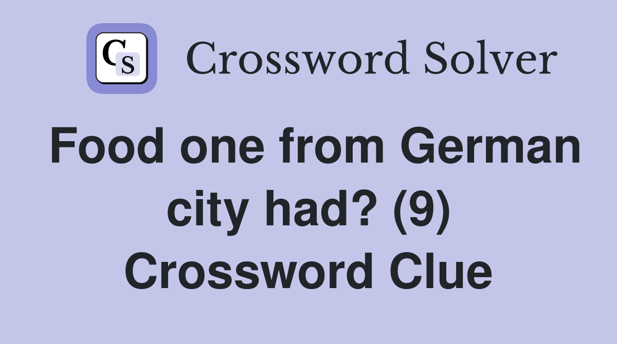 Food one from German city had? (9) Crossword Clue Answers Crossword
