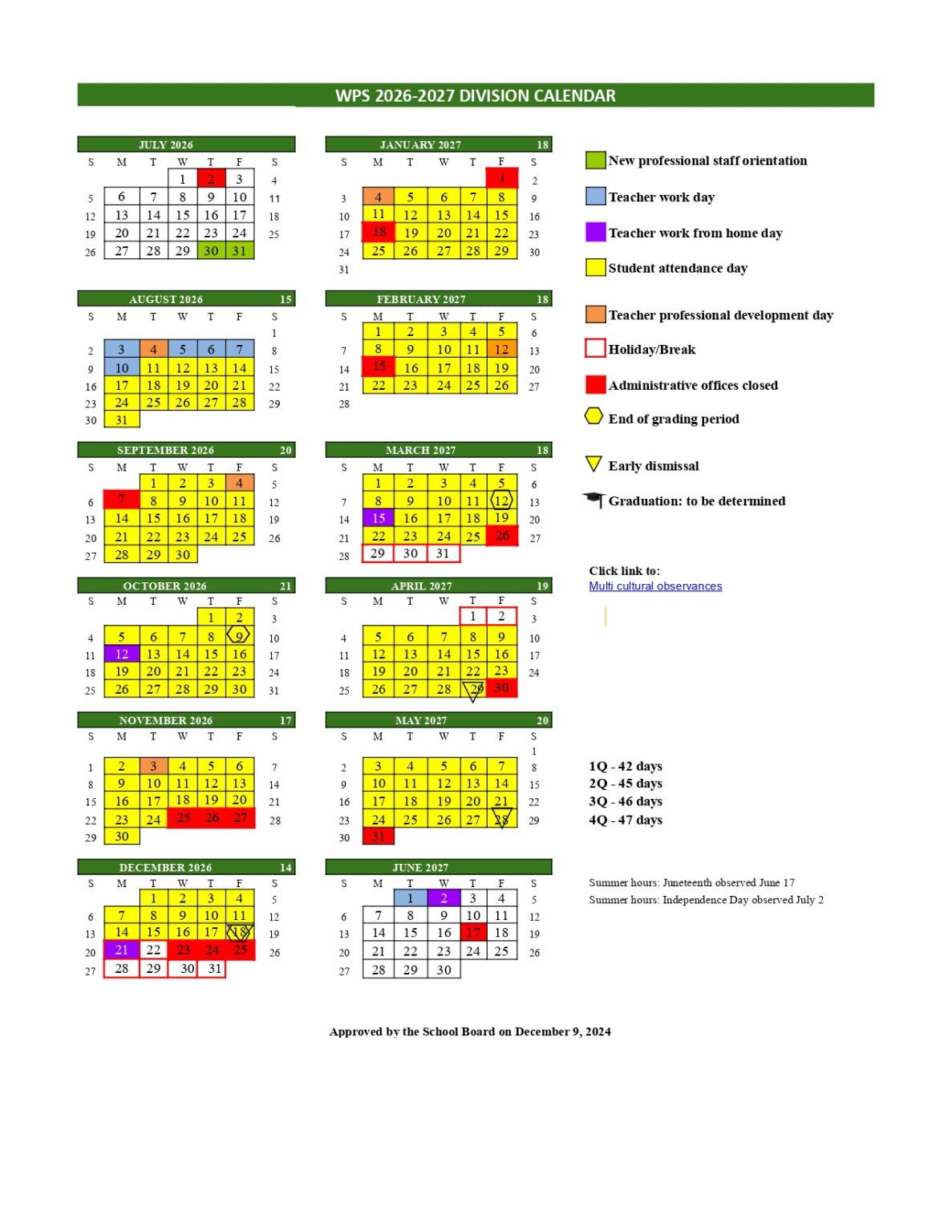 Winchester Public Schools Calendar 2026 2027 Elementary
