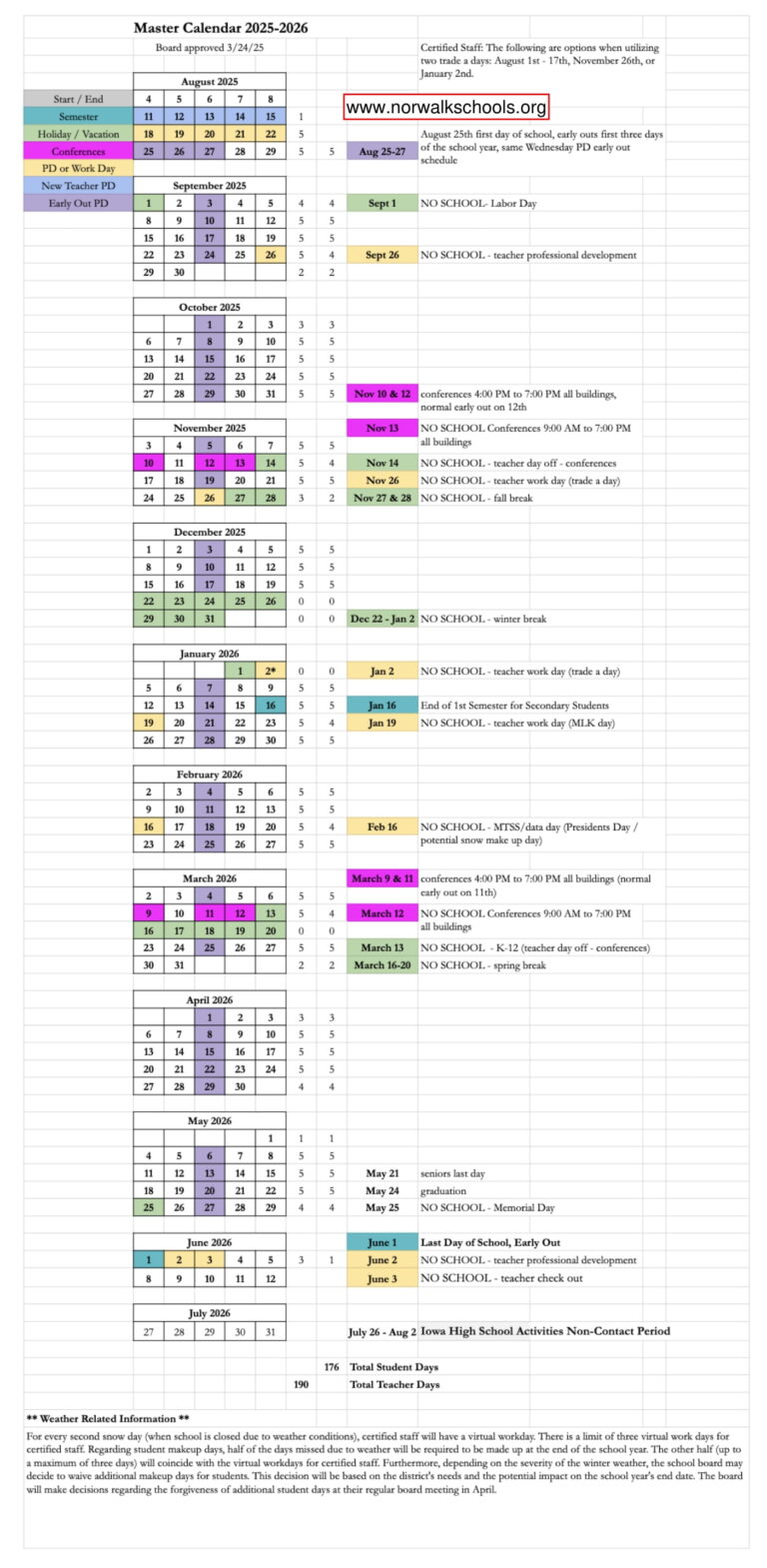 Norwalk Community School District IA Calendar 25 26 Revised pdf