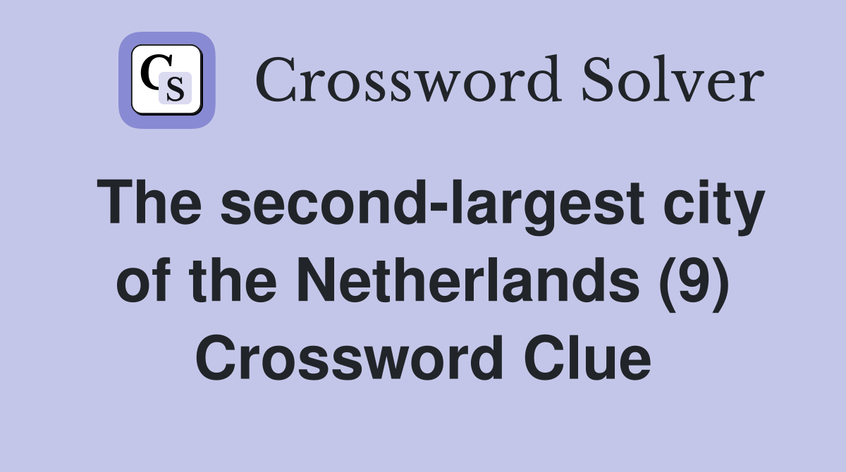 The second largest city of the Netherlands (9) Crossword Clue Answers