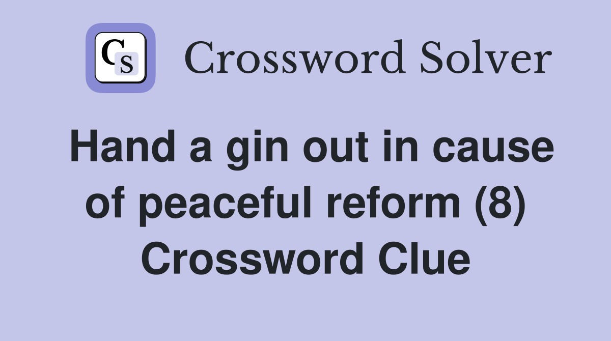 Hand a gin out in cause of peaceful reform (8) Crossword Clue Answers