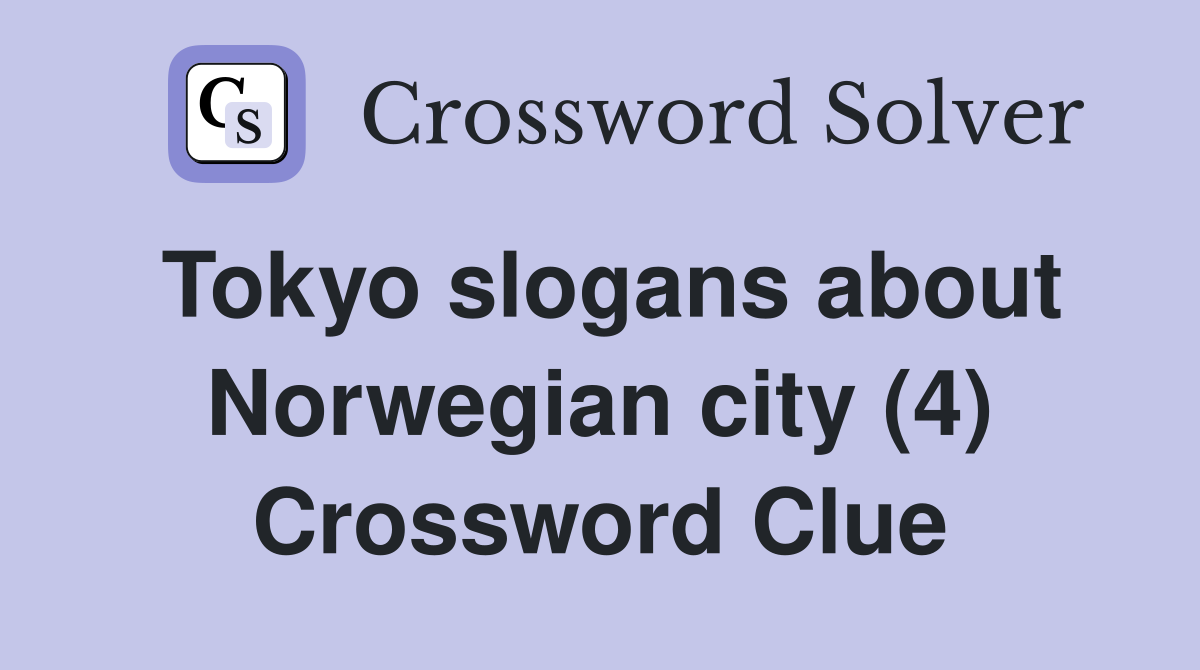 Tokyo slogans about Norwegian city (4) Crossword Clue Answers