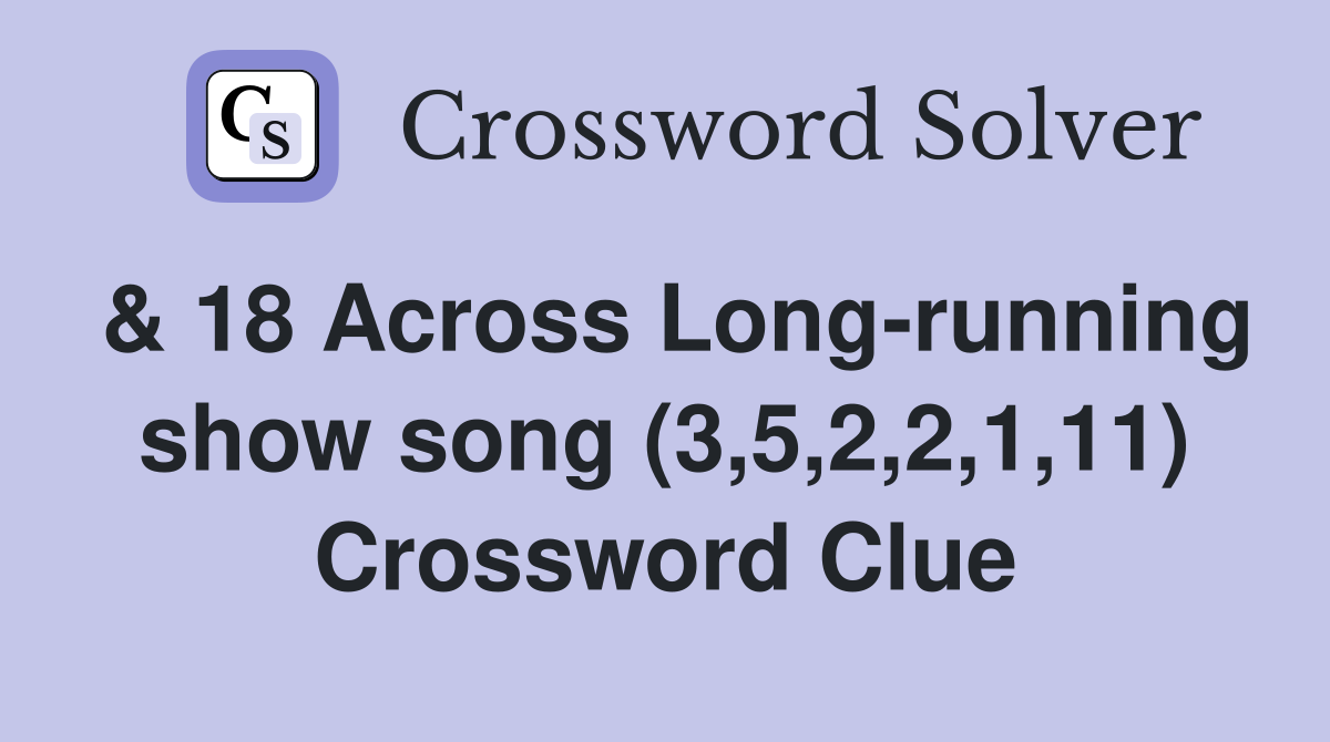 18 Across Long running show song (3 5 2 2 1 11) Crossword Clue