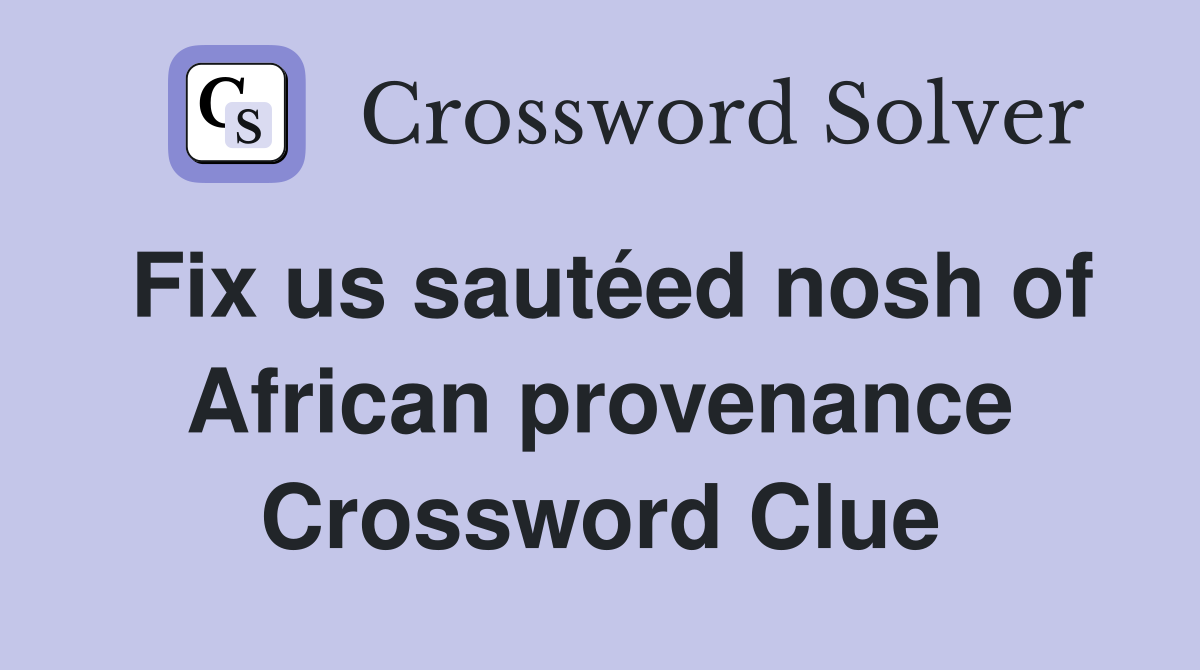 Fix us sautéed nosh of African provenance Crossword Clue Answers