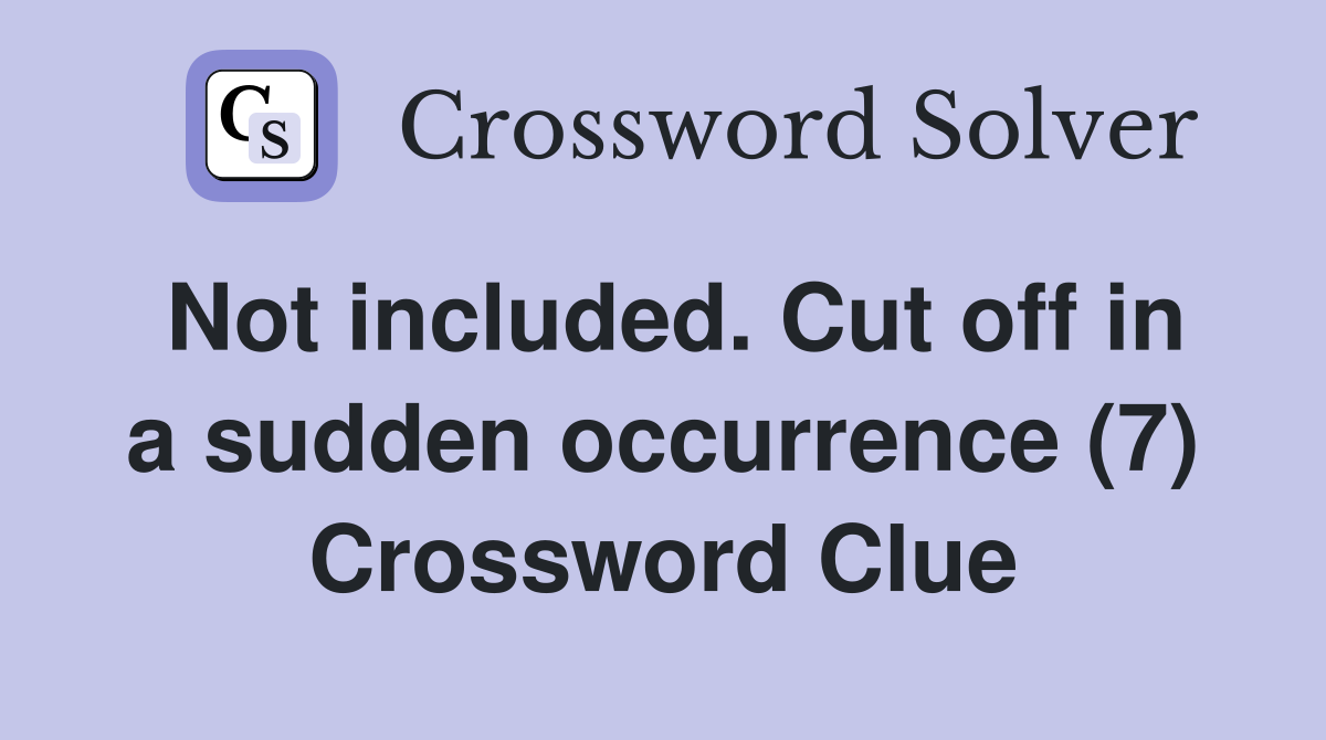 Not included Cut off in a sudden occurrence (7) Crossword Clue