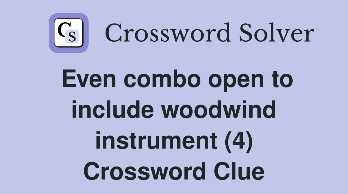 Even combo open to include woodwind instrument (4) Crossword Clue