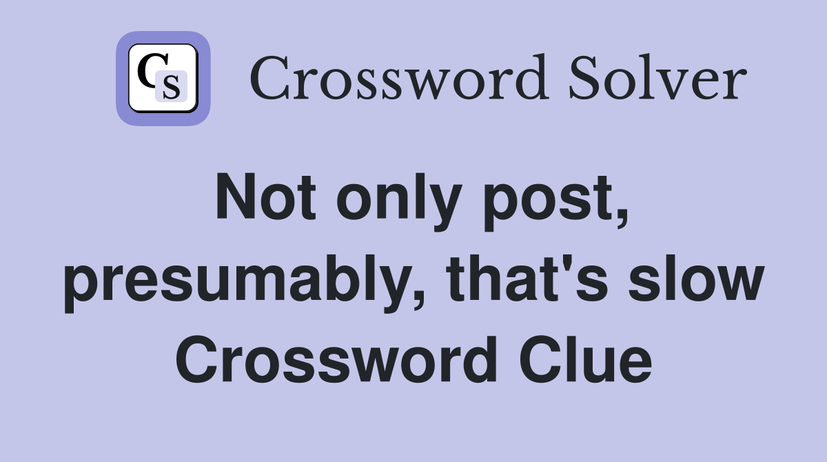 Not only post presumably that #39 s slow Crossword Clue Answers