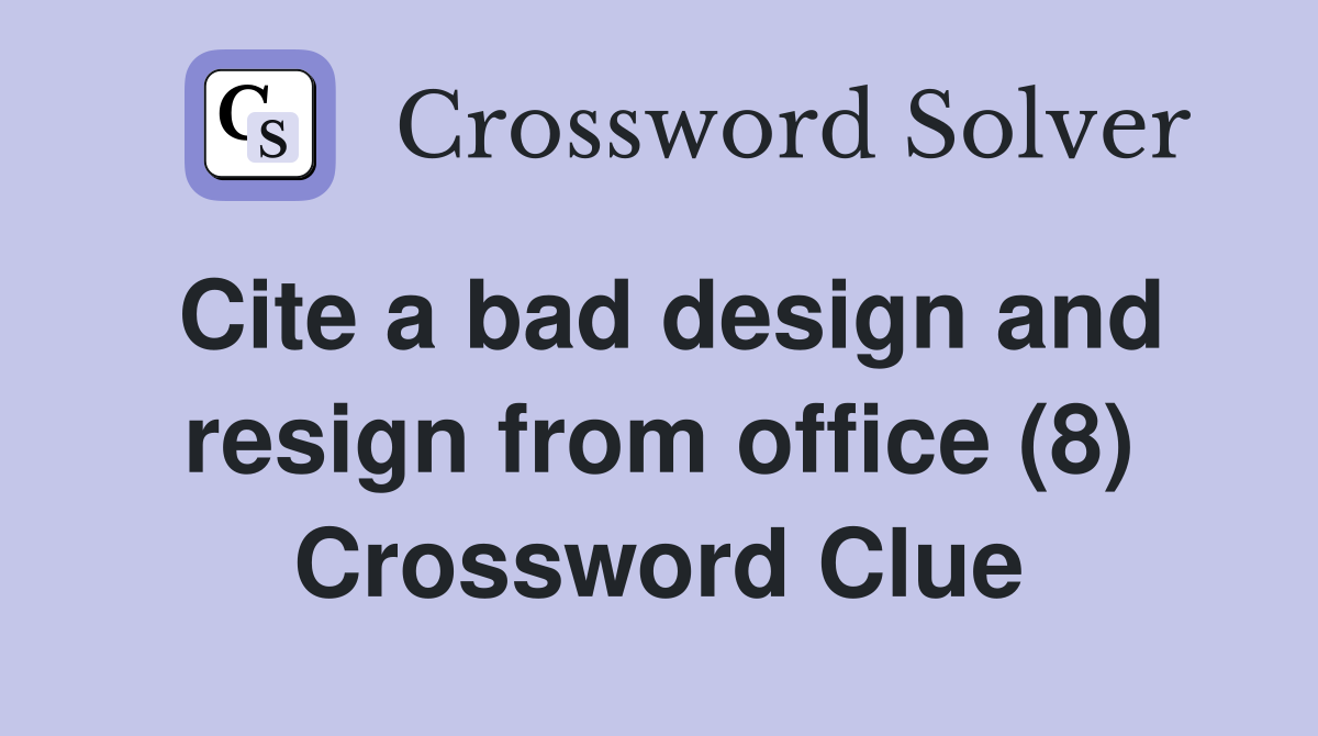 Cite a bad design and resign from office (8) Crossword Clue Answers
