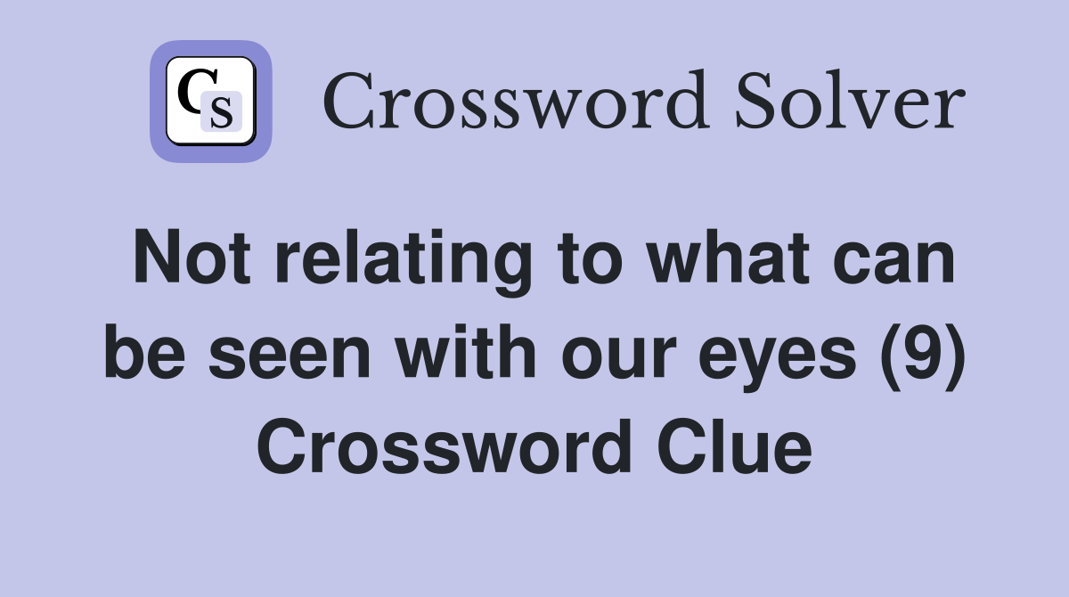 Not relating to what can be seen with our eyes (9) Crossword Clue