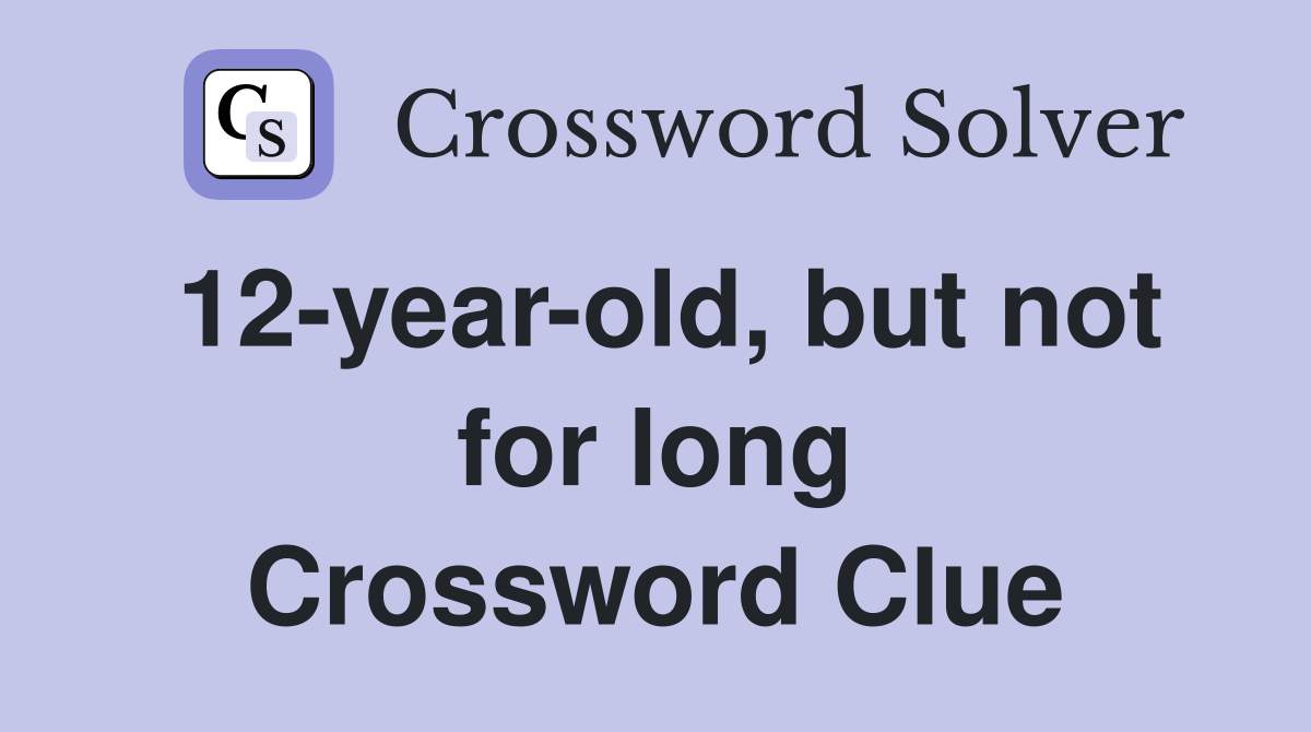 12 year old but not for long Crossword Clue Answers Crossword Solver