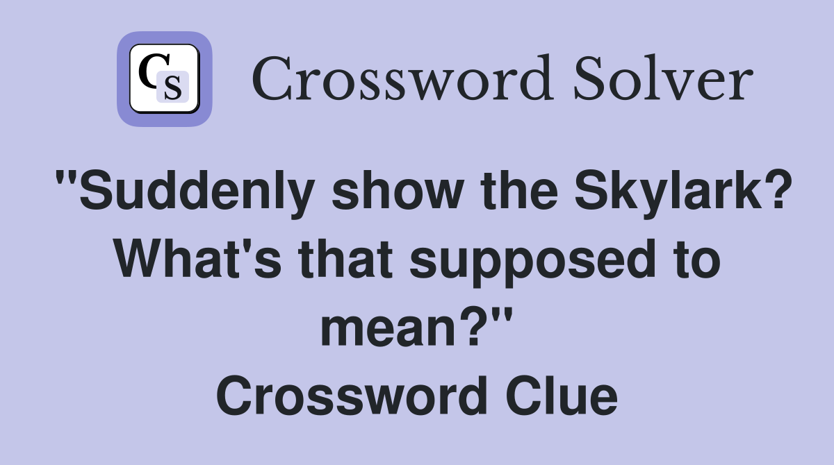 quot Suddenly show the Skylark? What #39 s that supposed to mean? quot Crossword