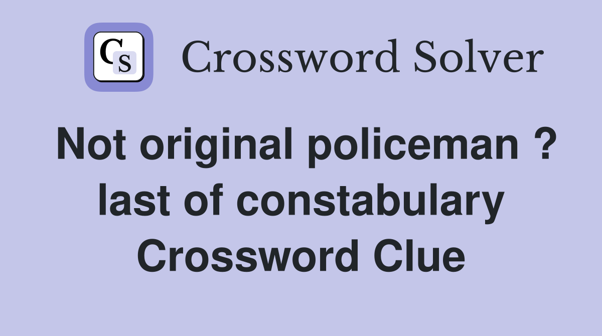 Not original policeman ? last of constabulary Crossword Clue Answers