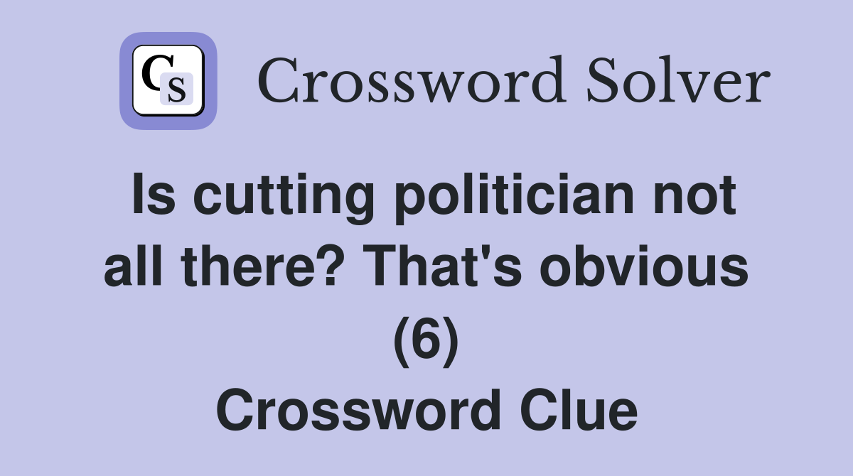 Is cutting politician not all there? That #39 s obvious (6) Crossword