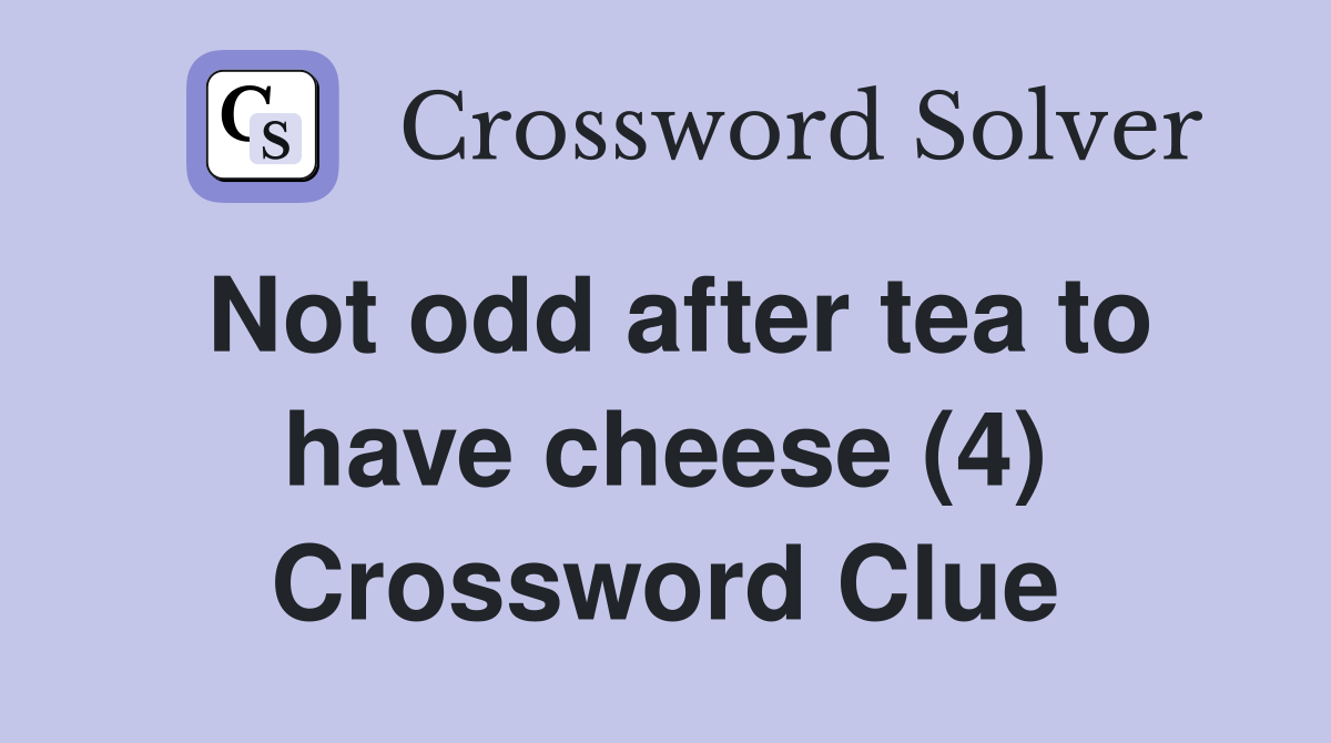 Not odd after tea to have cheese (4) Crossword Clue Answers