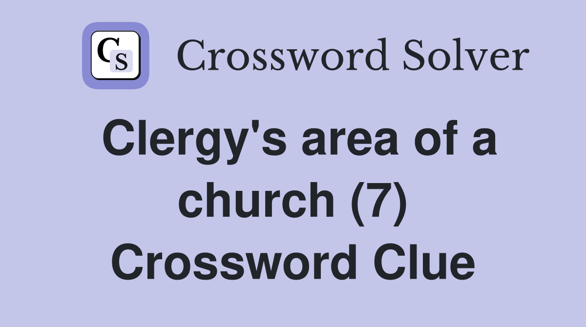 Clergy #39 s area of a church (7) Crossword Clue Answers Crossword Solver