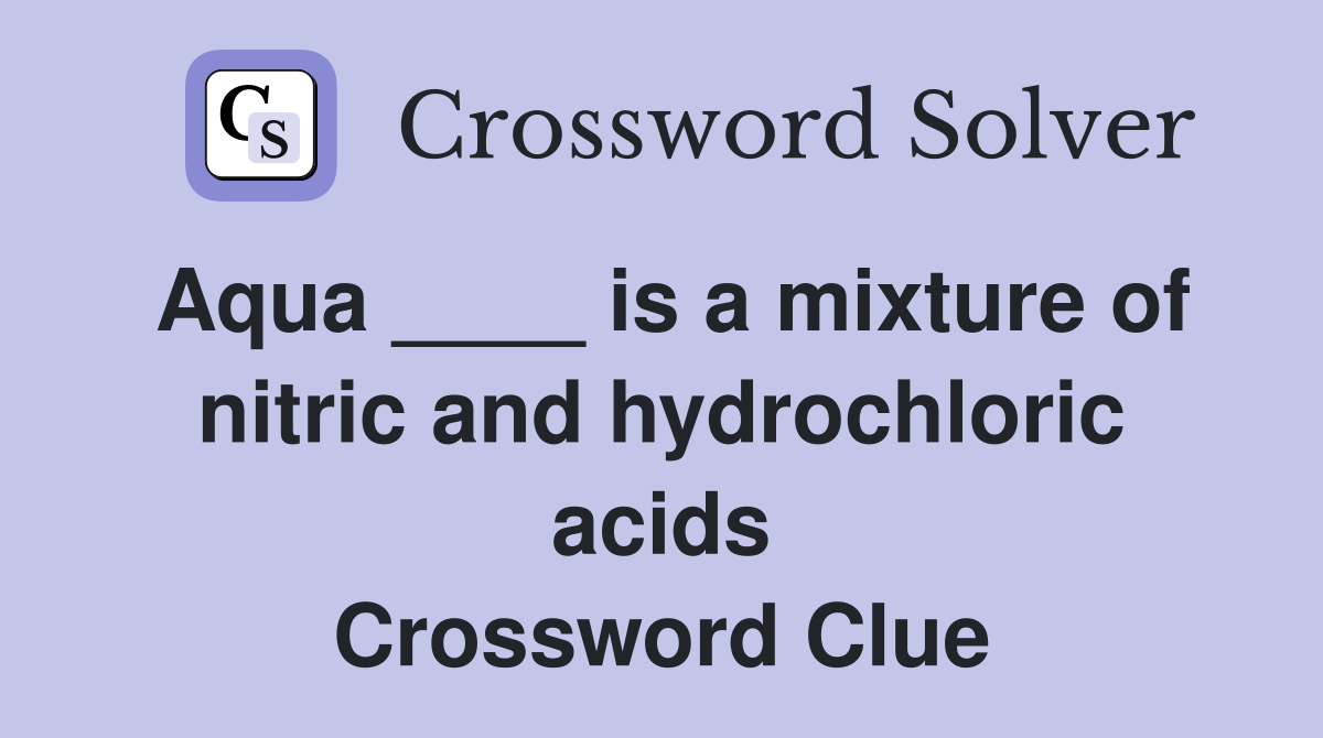 Aqua is a mixture of nitric and hydrochloric acids Crossword