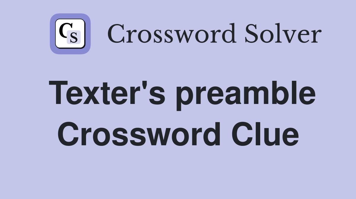 Texter #39 s preamble Crossword Clue Answers Crossword Solver