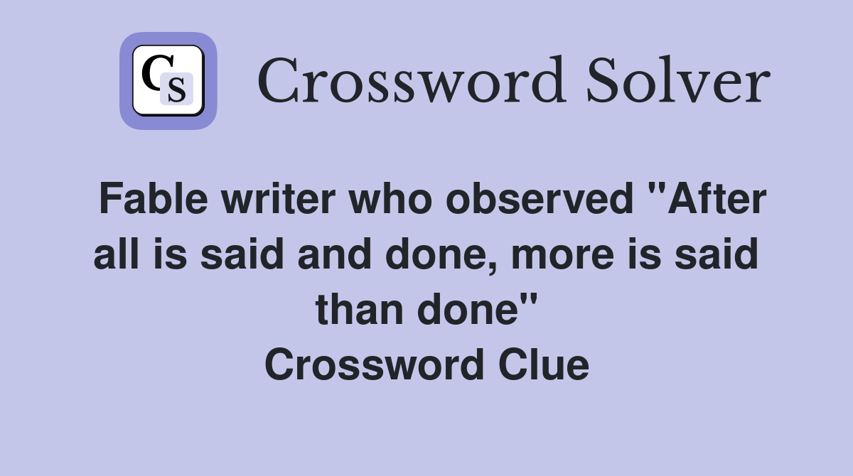 Fable writer who observed quot After all is said and done more is said
