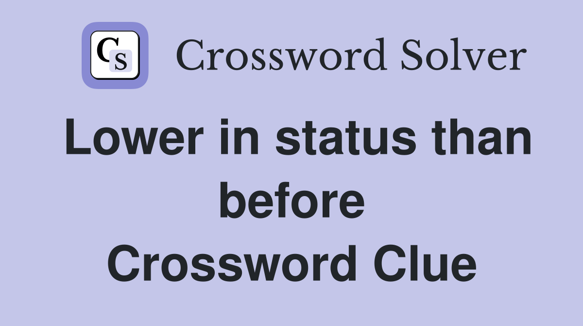 Lower in status than before Crossword Clue Answers Crossword Solver