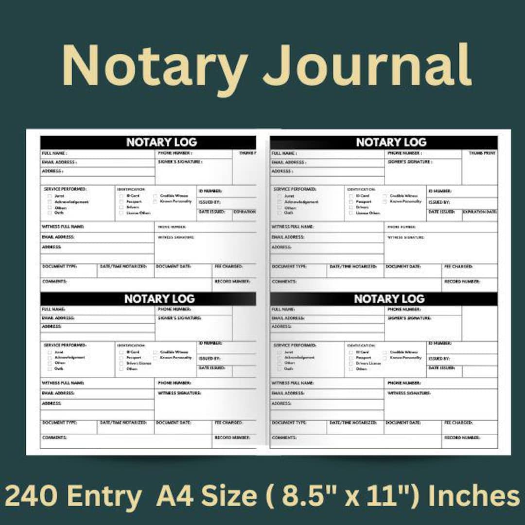 Printable Notary Journal Notary Log Book Notary Book Printable