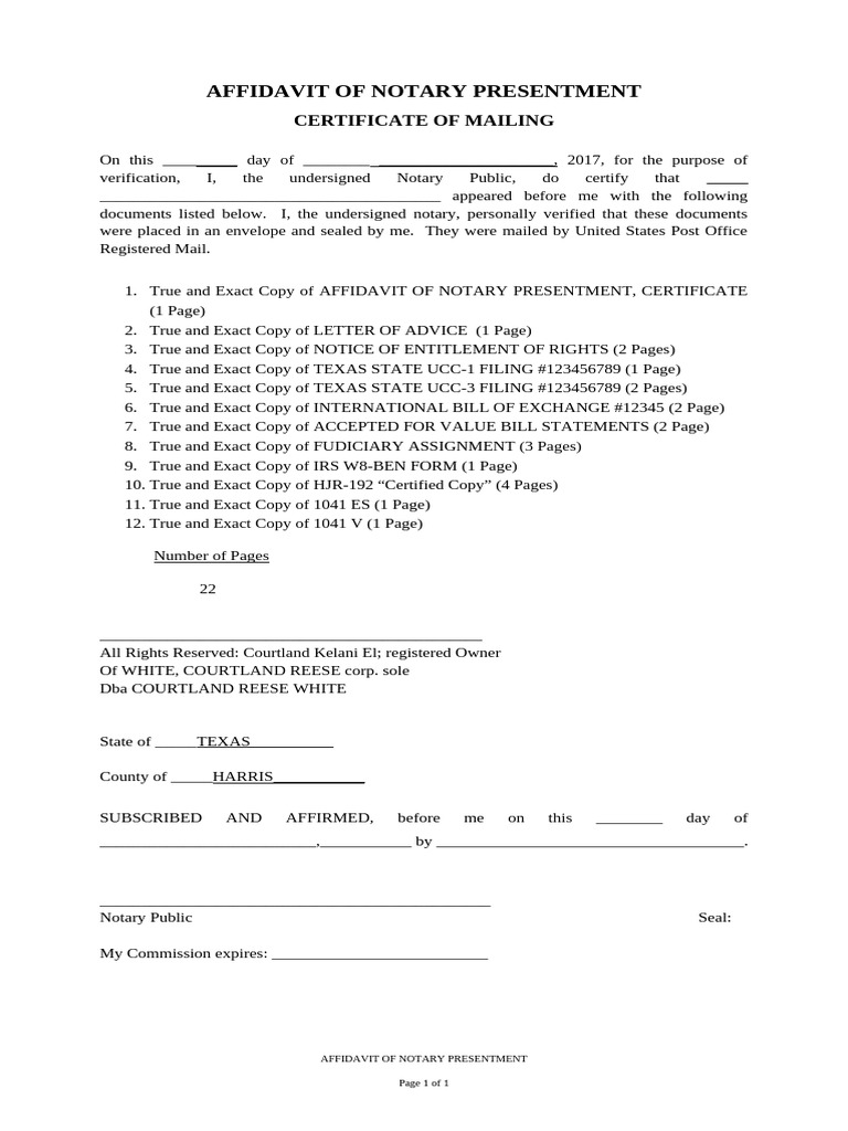 Affidavit Of Notary Presentment Form Printable Form 2024