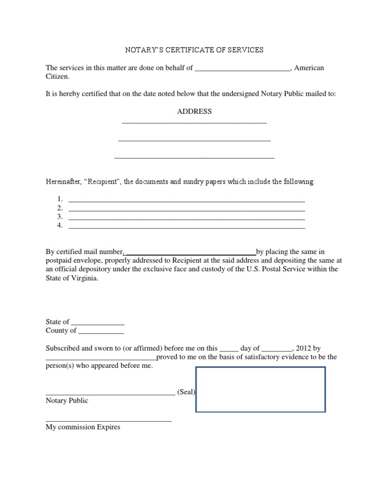 Blank Notary Presentment for Mailings