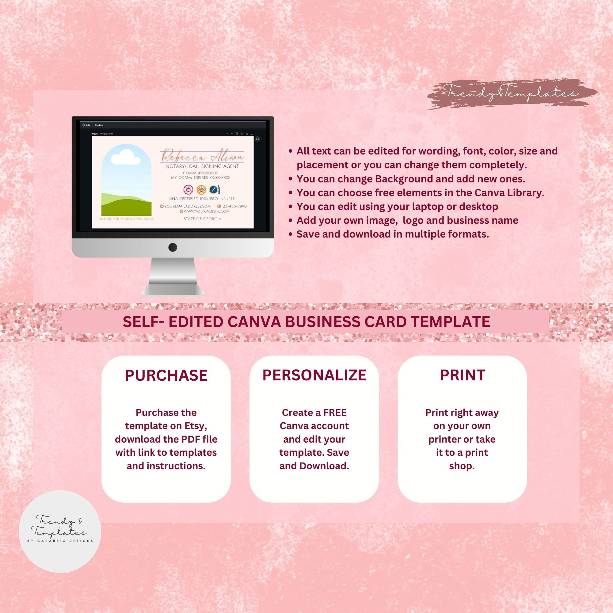 Notary Public Business Card Canva Traci #39 s Creative Shop