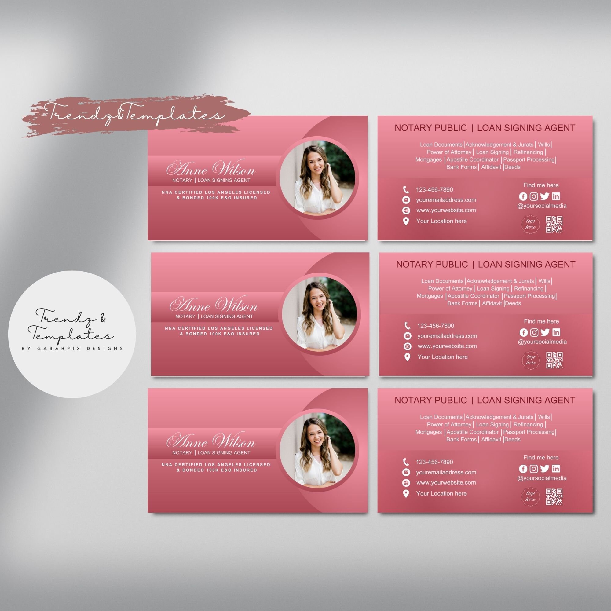 Modern Custom Notary Public Business Card Template With QR Code Etsy