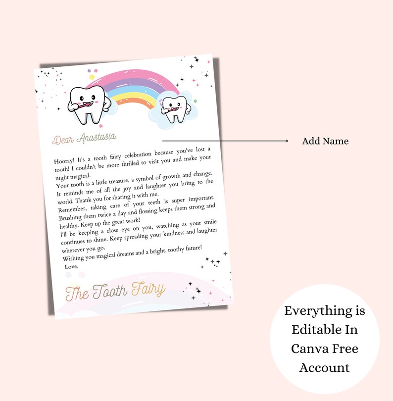 Tooth Fairy Letter Editable Tooth Fairy Note Tooth Fairy Printable