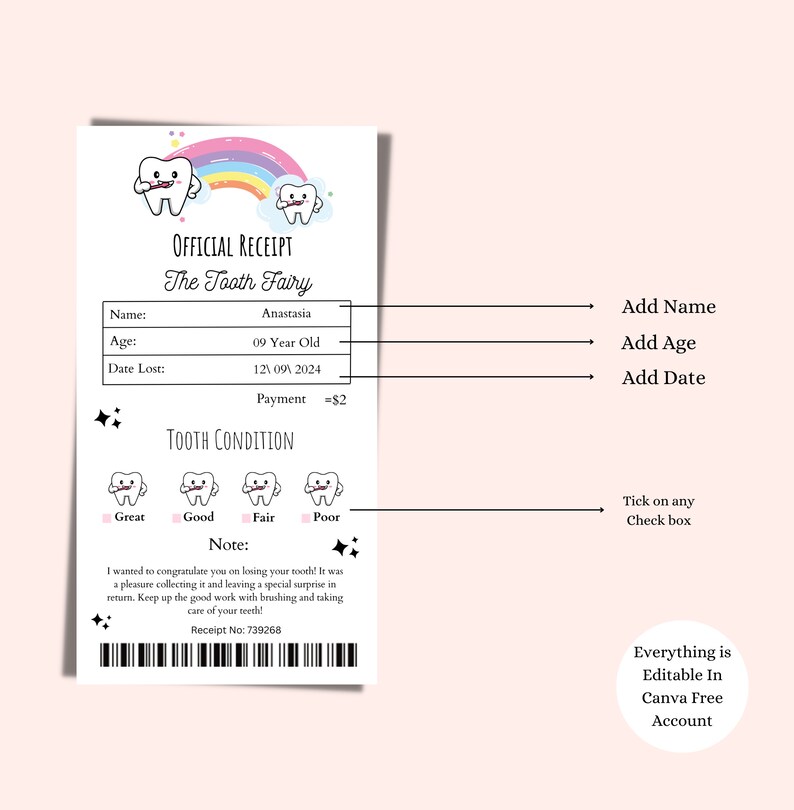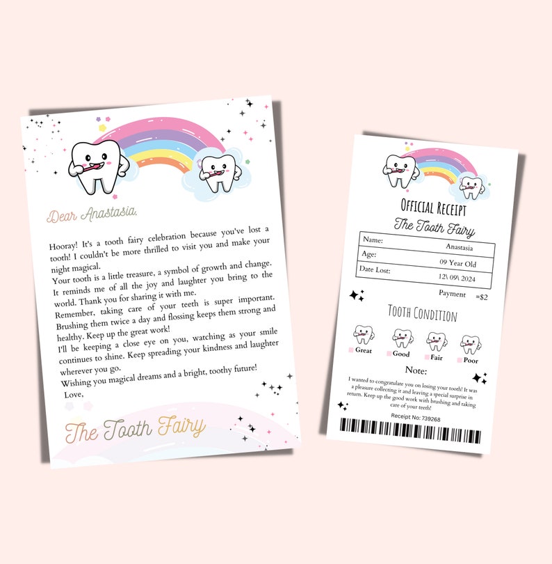 Editable Tooth Fairy Receipt and Letter Tooth Fairy Letter First