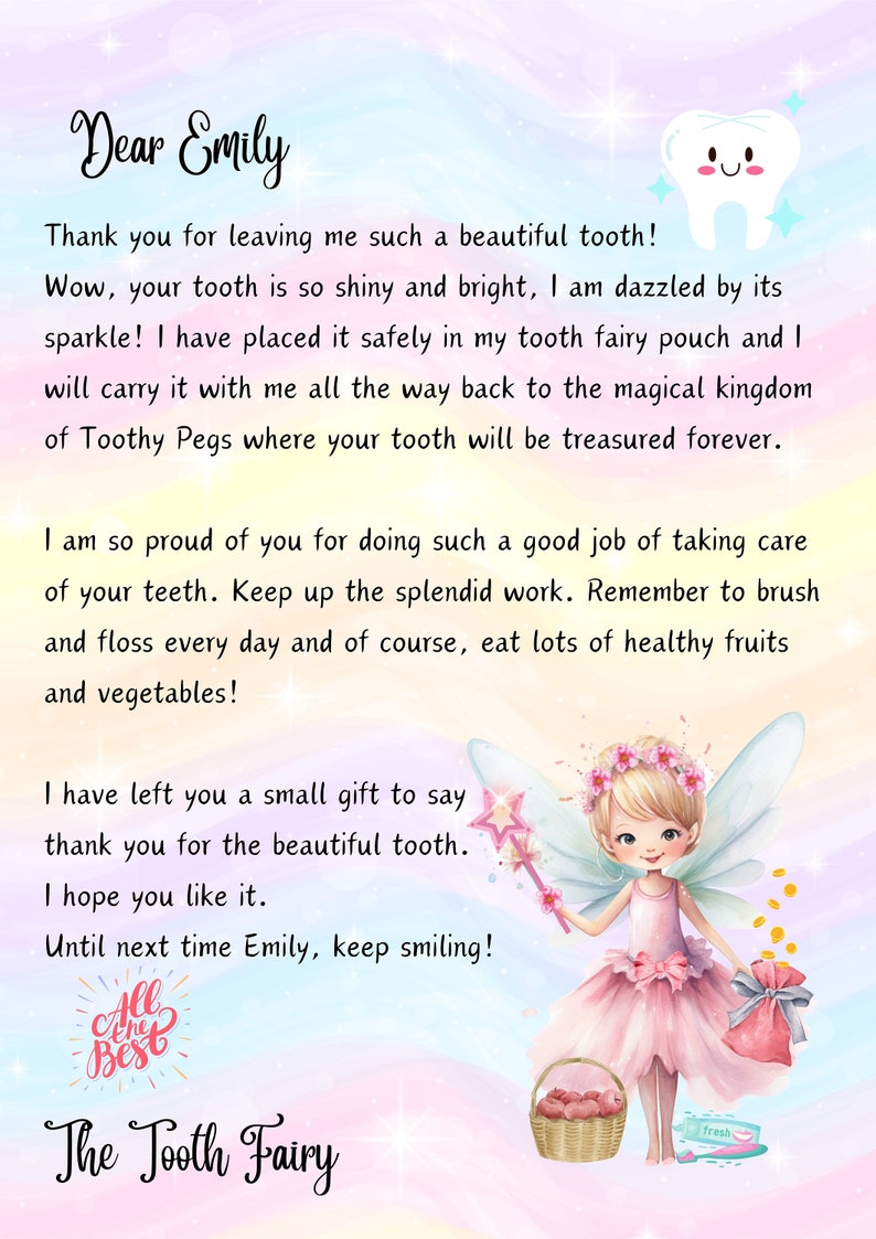 Tooth Fairy Letter Printable Digital Download Tooth Fairy Etsy UK
