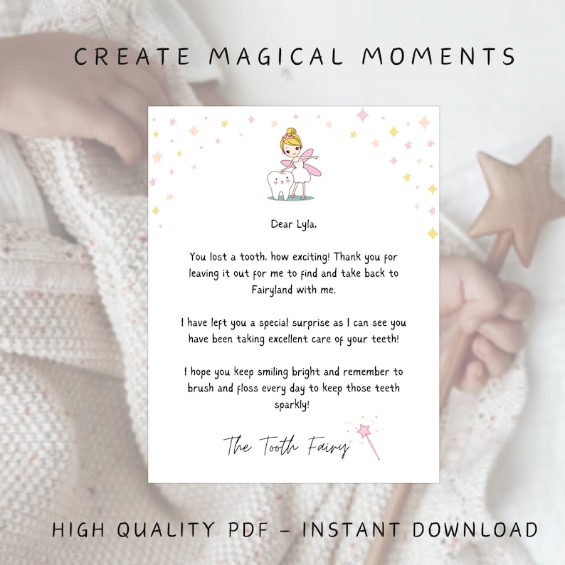 Tooth Fairy Letter Printable Digital Download Tooth Fairy Gift Tooth