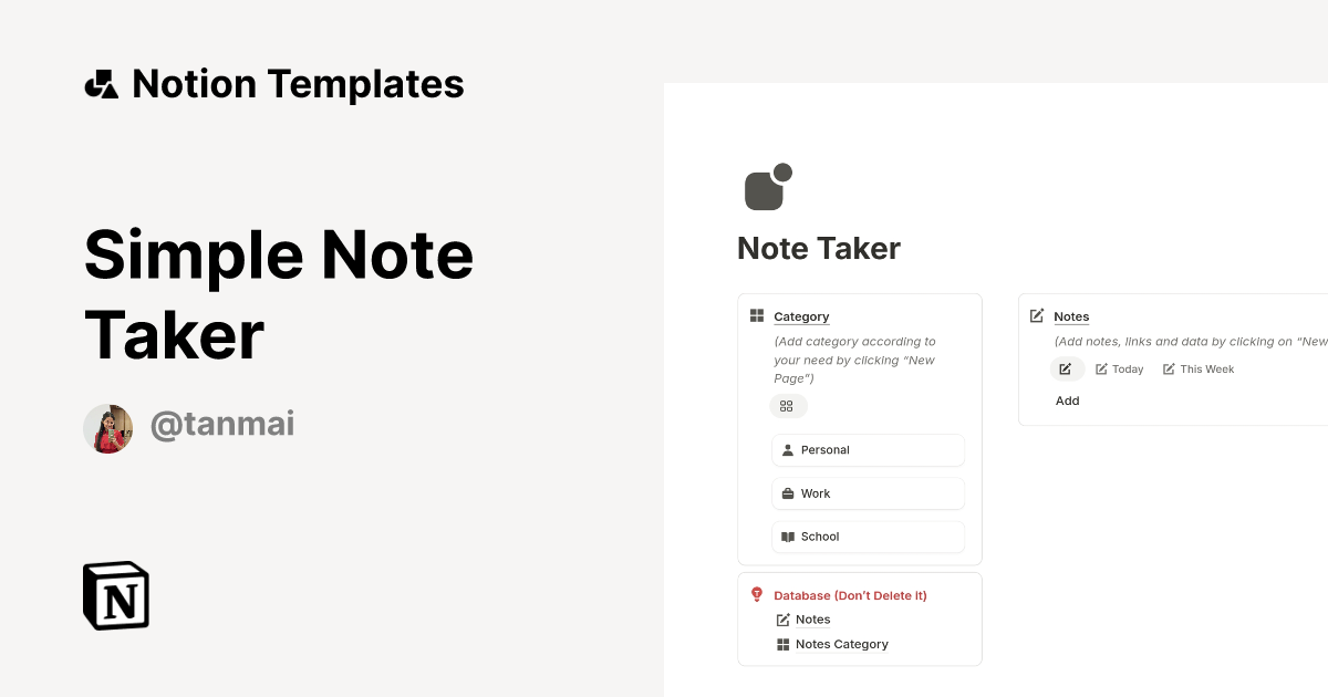 Simple Note Taker Template Notion Marketplace