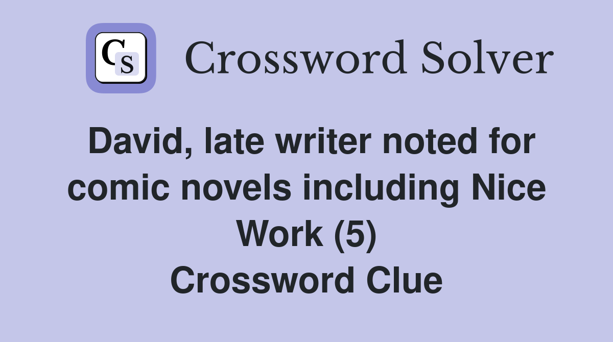 David late writer noted for comic novels including Nice Work (5